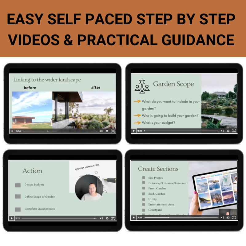 ✔️ Personal Feedback + Q&As: Submit your site photos and garden plans for detailed feedback, plus fortnightly recorded Q&A sessions during the 12-week cohort.